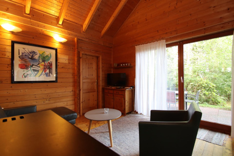 La casa de vacaciones de madera ofrece espacio para hasta 6 personas con tres dormitorios independientes, así todos tienen suficiente privacidad. Después de un día al aire libre, caliéntate con los tuyos en la sauna privada y luego relájate en la terraza con una bebida en la mano, contemplando el entorno natural y el agua.