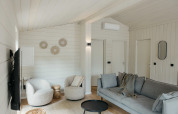 We waren in oktober een weekje voor het eerst in Wilsumer Berge Resort, in een prachtig huisje met een mooie natuurlijke inrichting (keramisch servies, planten, houten balk) en een hottub. We voelden ons er direct thuis en de honden ook. Het was fijn hoe er werd meegedacht door de receptie; zo werd er een extra matras gebracht voor mijn zus die in een rolstoel zit en zacht moet liggen. We hadden een erg mooi uitzicht en voldoende privacy van de andere huisjes. De honden hebben heerlijk gespeeld met andere leuke honden bij de hondenspeelvijver. Elke ochtend haalden we verse broodjes bij de minisupermarkt naast de receptie. Het was prettig om zowel een regendouche als een stevige gewone douchekop te hebben. Fijn dat er ook een vaatwasser was. We gaan een volgende keer wat uitgebreider het terrein met zijn vijvers en bossen verkennen.