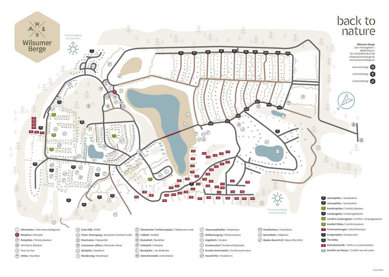 Wilsumer Berge está situado en un lago recreativo único, donde podrás disfrutar de un auténtico día de playa con toda la familia. En la Sala de Aventuras se organizan varias actividades de interior, como escalada y tiro con arco. En la granja de alpacas, puedes abrazar alpacas y el equipo de animación organiza actividades divertidas para los niños.