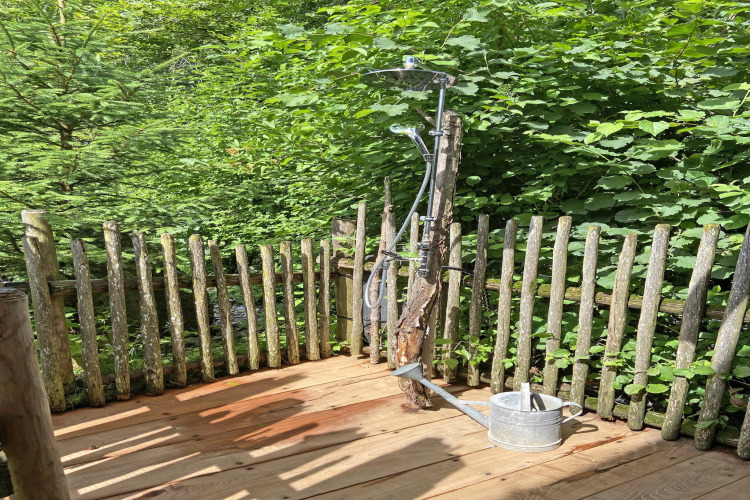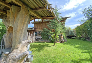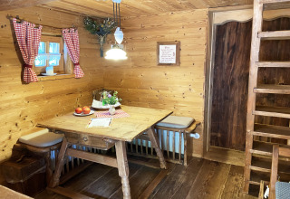 La distribución es práctica y relajada, ideal para familias o un pequeño grupo de amigos. Los niños tienen mucho espacio para jugar, tanto dentro como fuera, y la litera será sin duda una de sus favoritas. El baño se encuentra accesible desde el exterior, y hay un aseo adicional con urinario, así no tendrás que hacer fila por la mañana. La calefacción central de leña mantiene toda la cabaña agradablemente cálida, incluso en invierno.