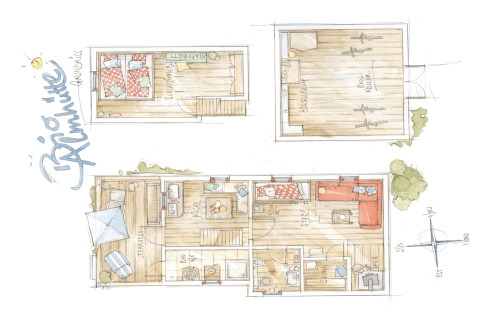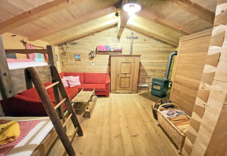 En la planta baja encontrarás una cocina grande y bien equipada donde podrás preparar fácilmente deliciosas comidas en compañía. Pon música con la radio y el reproductor de CD mientras cocinas, y entra de verdad en modo vacaciones. Junto a la cocina está la acogedora zona de estar/dormitorio con un sofá cama doble y una litera, perfecta si viajas con niños. Aquí puedes relajarte en el sofá, ver la televisión por satélite o acurrucarte junto a la estufa de leña en las noches más frescas.