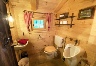Un auténtico punto destacado es tu propia sauna privada en la casa, ideal después de una larga caminata o paseo en bicicleta. El baño principal es accesible desde el exterior, y hay un aseo adicional con urinario para más comodidad cuando viajas en familia o con un grupo pequeño.