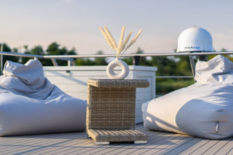 Permanentemente amarrada, la casa flotante ofrece todo el encanto de la vida sobre el agua sin el movimiento de la navegación; ideal si te encanta el ambiente marinero pero aún quieres estabilidad y comodidad. Con fácil acceso a la región circundante, puedes combinar momentos tranquilos en la cubierta con excursiones diarias en la naturaleza o a pueblos cercanos.
