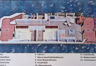 Gracias a la distribución generosa y el diseño inteligente, todos tienen su propio espacio para relajarse, leer un libro o simplemente ver pasar los barcos. Al mismo tiempo, la zona de estar abierta invita a pasar tiempo juntos, ya sea planeando la próxima excursión o compartiendo una copa al atardecer.