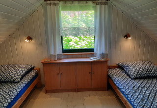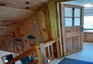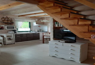 Por dentro, la casa es acogedora y práctica, con espacio para hasta 4–5 personas. En el sótano encontrarás una cómoda sala de estar con cocina abierta y un baño. Aquí puedes cocinar en compañía, jugar a juegos de mesa o simplemente relajarte después de un día al aire libre. En la planta superior hay dos dormitorios independientes, cada uno con dos camas individuales, mesitas de noche y ropa de cama lista para tu llegada, así que no tienes que llevar la tuya propia.