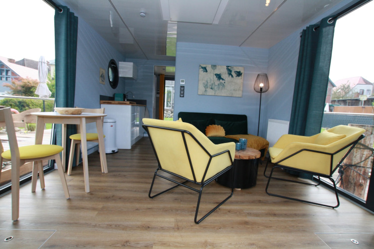Este hogar vacacional flotante está hecho para dos personas. Despiértate con el suave murmullo de las olas contra el casco, abre la puerta y sal directamente a tomar el aire fresco del lago. Desde tu terraza privada puedes ver pasar los barcos, disfrutar de tu café de la mañana o saborear una copa de vino al atardecer. Vivir en una casa flotante significa estar en contacto directo con la naturaleza todo el día, sin renunciar a la comodidad.
