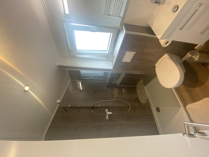 El primer dormitorio tiene una cama box-spring (1,60 x 2,00 m), el segundo tiene dos camas individuales (0,80 x 2,00 m) y puede alojar a 4 personas. Hay un armario extragrande con mucho espacio de almacenamiento y un perchero. La moderna y cómoda cocina está equipada con lavavajillas, horno/microondas, cocina de gas y frigorífico-congelador.