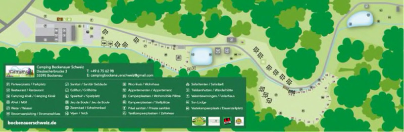 Disfruta de unas vacaciones glamping en Alemania y alójate en el Camping Bockenauer Schweiz, un camping tranquilo y acogedor situado en Renania-Palatinado. Con grandes ciudades en la región, y una ubicación en el Parque Natural de Soonwald-Nahe, hay mucho que hacer en la zona. Refréscate en la piscina en temporada alta, y si no, rema en los arroyos que pasan y atraviesan el camping.