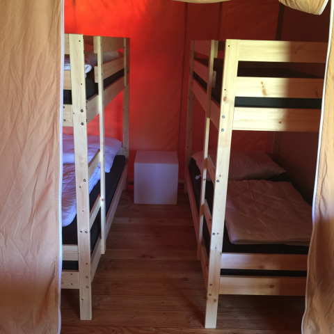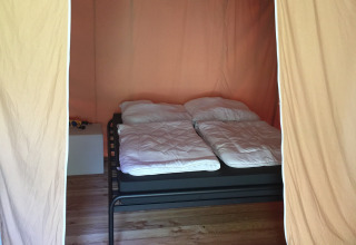 La tienda safari es una tienda safari de lujo con capacidad para 6 personas, ¡un alojamiento ideal para unas vacaciones en familia o en grupo! Con una superficie de 40m2. Comed juntos en la gran mesa con sillas, abrid completamente la parte delantera de la tienda y disfrutad de las vistas y del aire fresco. Prepara las comidas en la cocina totalmente equipada y relájate al final del día en uno de los lujosos sillones o en uno de los 2 dormitorios. En un dormitorio encontrarás una gran cama doble, y en el otro 2 literas. Con 2 metros de largo, las camas son adecuadas tanto para niños como para adultos.