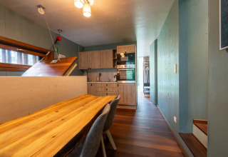 En la primera planta encontrarás un luminoso espacio abierto de sala y comedor. Relájate en el sofá junto a la acogedora chimenea, pon tu serie favorita en la smart TV o disfruta de una larga cena en la mesa del comedor. La cocina moderna está totalmente equipada con horno, microondas combinado, lavavajillas y cafetera con cápsulas: ideal para un desayuno relajado o una cena casera.