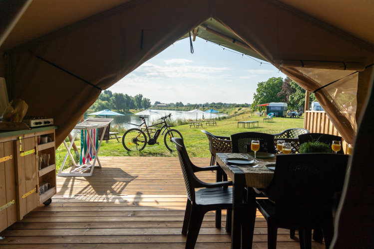 La tienda safari es una tienda safari de lujo con capacidad para 6 personas, ¡un alojamiento ideal para unas vacaciones en familia o en grupo! Con una superficie de 40m2. Comed juntos en la gran mesa con sillas, abrid completamente la parte delantera de la tienda y disfrutad de las vistas y del aire fresco. Prepara las comidas en la cocina totalmente equipada y relájate al final del día en uno de los lujosos sillones o en uno de los 2 dormitorios. En un dormitorio encontrarás una gran cama doble, y en el otro 2 literas. Con una longitud de 2 metros, las camas son adecuadas tanto para niños como para adultos. Esta tienda de safari, atractivamente amueblada, no está situada directamente junto al río, pero tiene vistas al río y mucha intimidad.