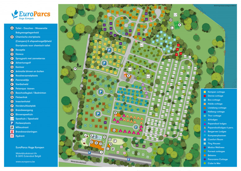 EuroParcs Hoge Kempen goza de una magnífica ubicación en el Limburgo belga, al borde del Parque Nacional de Hoge Kempen y justo al otro lado de la frontera holandesa, cerca de Maastricht. Disfruta de unas relajantes vacaciones en la hermosa campiña del exterior. Lo que hace especial a esta región son las desafiantes rutas de ciclismo y senderismo. Hay un parque de pulverización y un campo de minigolf para mayor entretenimiento. Como guinda del pastel, puedes utilizar gratuitamente las piscinas cercanas.