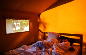 Tienda safari para 6 personas, con instalaciones sanitarias incluidas. La tienda safari para 4 personas con instalaciones sanitarias incluidas o la tienda safari para 6 personas.