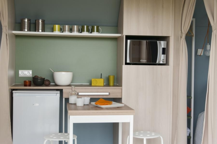 Experimenta la verdadera vida al aire libre en una tienda original con la comodidad del hogar. La Coco Sweet es adecuada para 2 personas y ofrece una terraza privada y cubierta para relajarse al aire libre. En el interior encontrarás una cocina equipada con una tabla sobre el frigorífico, un dormitorio y una sala de estar separada con sofá cama. Gracias a su diseño inteligente y materiales naturales como madera de coco y lona, esta tienda se siente cálida y contemporánea. Disfruta de wifi gratuito, tranquilidad y naturaleza, sin renunciar a la comodidad.