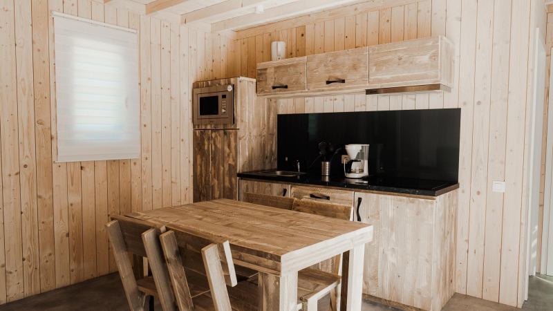 Haz uso de la cocina completamente equipada con placa eléctrica, lavavajillas, microondas, nevera, congelador, cafetera de filtro y todas las ollas, vasos y cubiertos necesarios. En la mesa del comedor dentro puedes disfrutar de las comidas juntos o sentarte a jugar un juego de mesa. Gracias a la calefacción central y el buen aislamiento, siempre se siente confortable, incluso en los días más frescos.