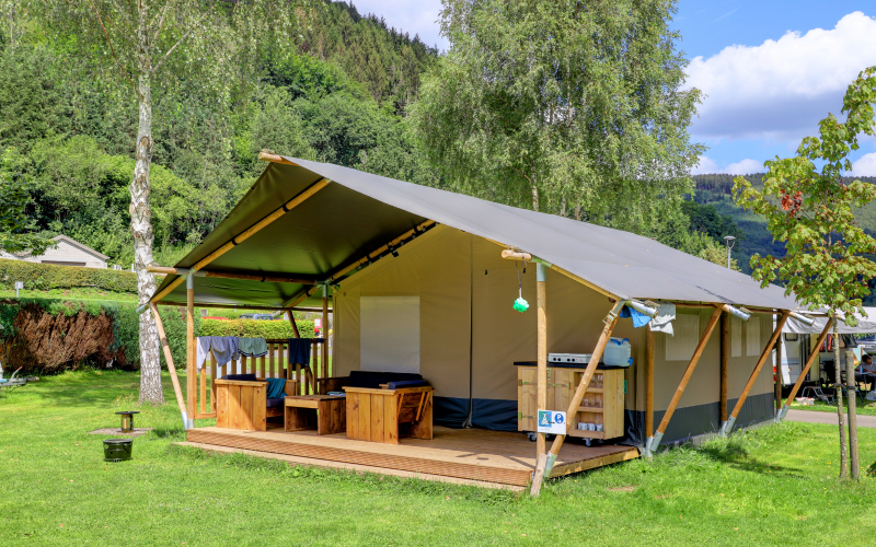 Elige unas vacaciones de glamping en pleno corazón de las Ardenas belgas en Camping Floreal La Roche-en-Ardenne. Despiértate entre las colinas, explora la naturaleza directamente desde el camping y termina el día con una cerveza belga en la terraza. Descubre lugares históricos, prueba productos locales y deja que los niños jueguen libremente. Gracias a la combinación de confort, tranquilidad y excursiones activas, este es el lugar ideal para unas vacaciones relajantes con un toque aventurero.
