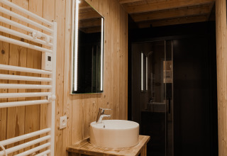 Relájate en la acogedora sala de estar con televisión o retírate a uno de los dos cómodos dormitorios: uno con cama doble y otro con dos camas individuales. El lodge cuenta con un baño moderno con ducha y lavabo, y un aseo separado para mayor comodidad. Tras un día en la naturaleza, puedes secar la ropa fácilmente con la secadora disponible.