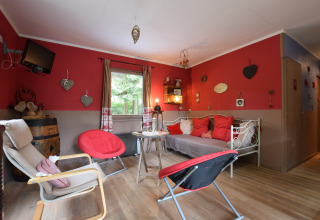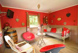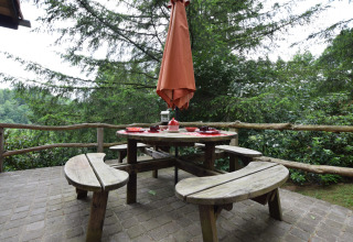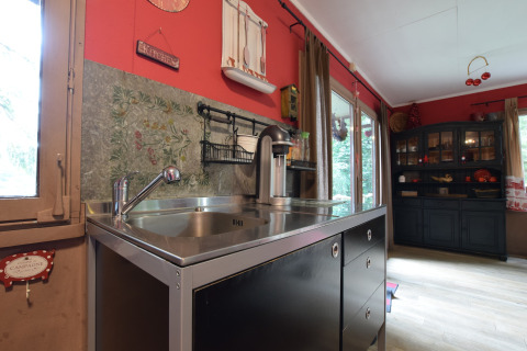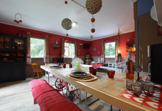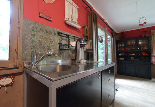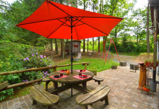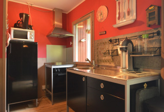En el exterior, el ambiente es igual de bueno. El jardín privado es un lugar tranquilo para relajarse, leer un libro o disfrutar de una bebida con vistas a los alrededores verdes. En la terraza encontrarás muebles de jardín cómodos y todo lo que necesitas para una noche de barbacoa relajada. Enciende la parrilla, sírvete una bebida y disfruta de la calma del bosque que te rodea.
