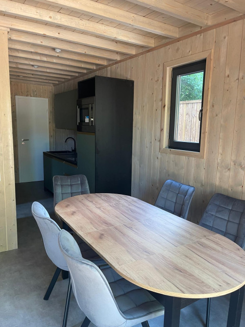 Experimenta comodidad y tranquilidad en este elegante eco lodge con espacio para 4 personas. Relájate en la amplia sala de estar con smart TV y wifi, o prepara comidas en la cocina totalmente equipada con lavavajillas, microondas y cafetera. La lodge cuenta con dos dormitorios, un aseo separado y un baño moderno. Comienza el día desayunando en la mesa del comedor y termina en la terraza con conjunto de salón. Gracias a la calefacción central, siempre es agradable aquí.