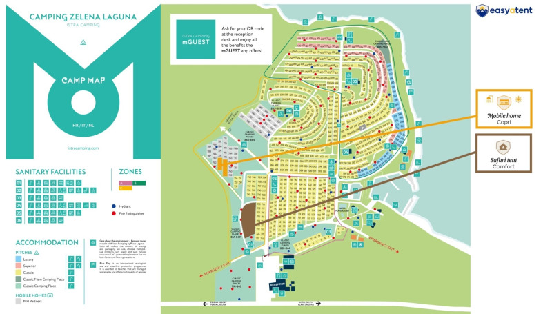 A sólo 5 km está Poreč, donde puedes visitar la histórica Basílica de Eufrasio. El tren turístico te lleva fácilmente a esta ciudad. El propio camping ofrece deportes acuáticos como esquí acuático y submarinismo. Recorre en bicicleta los pinares y olivares de los alrededores para explorar tranquilamente la naturaleza. A 10 km encontrarás la encantadora Vrsar, conocida por sus hermosas vistas y la gastronomía local. Una excursión de un día a Rovinj, a 35 km, ofrece lugares de interés cultural y un animado mercado.