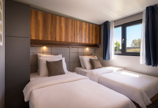 La Sunset Villa para 4+2 con jacuzzi ofrece una estancia lujosa en la exclusiva zona Sunset. Diseñada para un máximo de cuatro adultos y dos niños, esta elegante villa de camping cuenta con un interior moderno con dos dormitorios, cada uno con su baño privado. El amplio salón incluye un sofá cama y se conecta a una cocina totalmente equipada con lavavajillas, microondas y cocina eléctrica.