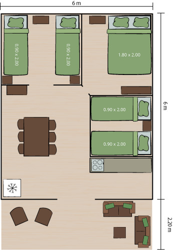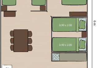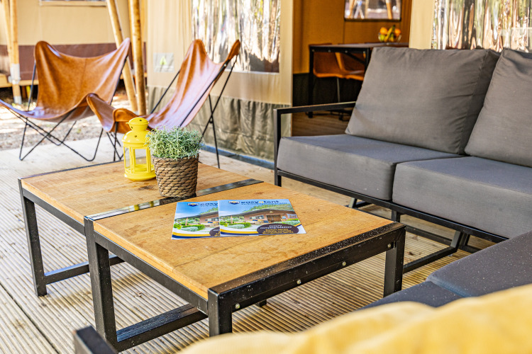 Durante tus vacaciones glamping te alojarás con un máximo de 6 personas en una espaciosa Safaritent Lodge (41 m²), acampando con estilo y equipada con todas las comodidades. La tienda está completamente amueblada con inventario, mobiliario y una cocina completa.