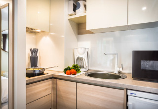 Escápate a la costa Adriática y disfruta de una estancia romántica en el Bella Vista Chalet para 2 en Valamar Camping Krk. A solo 150 metros de la playa y rodeado de vegetación mediterránea, este moderno chalet combina estilo y comodidad. Relájate en la amplia terraza cubierta con tumbonas y cortinas para mayor privacidad, o entra en un interior luminoso que cuenta con una gran cama doble, aire acondicionado y TV satelital. La cocina americana está completamente equipada con nevera, microondas, cafetera y hervidor de agua, perfecta para preparar comidas sencillas en la isla. Un elegante baño con una espaciosa ducha y artículos de aseo de calidad completa la experiencia. Date un refrescante chapuzón en la piscina con vistas al mar o pasea por los encantadores alrededores. Diseñado para parejas, este chalet ofrece la mezcla perfecta de tranquilidad, elegancia y romanticismo.