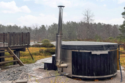 Sal al exterior y la sala de estar se extiende hacia una gran terraza, parcialmente cubierta para que puedas disfrutar al aire libre en casi cualquier clima. Enciende la barbacoa, comparte una bebida y contempla la hermosa vista del lago cercano y el bosque que lo rodea. Con un poco de suerte, podrás avistar fauna local como alces, ciervos o urogallos.