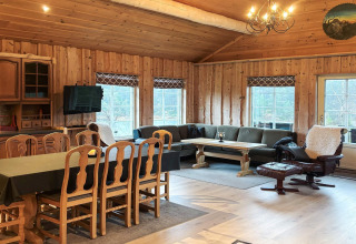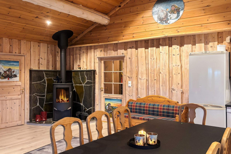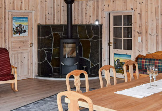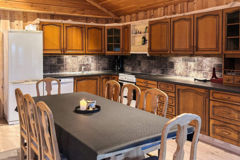 En el interior, encontrarás una amplia y cómoda sala de estar donde todos pueden pasar tiempo juntos. Relájate en el sofá, enciende la estufa de leña y disfruta de largas veladas de juegos, bebidas y buenas conversaciones. La cocina abierta y bien equipada, junto con el comedor, hacen que cocinar juntos sea fácil y divertido: nadie se queda fuera mientras se prepara la cena.