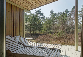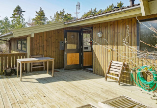 Desde la sala de estar se sale directamente a una gran terraza, parcialmente cubierta, con cómodos muebles de jardín. Probablemente aquí pasarás la mayor parte del tiempo: desayunos tranquilos al sol, tardes perezosas con un libro o una copa al atardecer mientras escuchas las olas a lo lejos. Si cambia el clima, la parte cubierta de la terraza te mantendrá seco mientras sigues disfrutando del exterior.