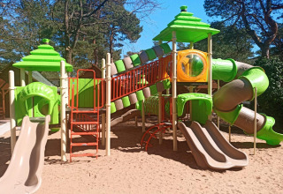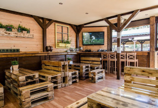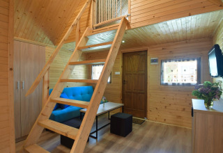 Tu acogedora cabaña de madera está pensada para relajados días de playa y largas noches de verano. Afuera tienes una terraza cubierta con un juego completo de muebles de jardín: perfecto para tu café de la mañana, un almuerzo ligero o una copa de vino después del atardecer. En el interior, la planta baja ofrece una luminosa sala de estar con TV y un cómodo sofá cama doble. La cocina americana tiene todo lo necesario para cocinar algo sencillo durante las vacaciones, y en este nivel también hay un baño con ducha.