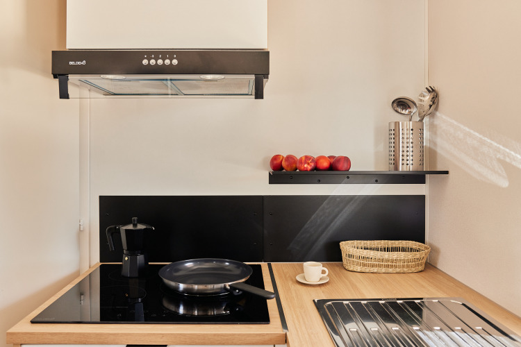 El Bungalow Premium de 37 m² es perfecto para un grupo de seis personas. Con tres dormitorios, que incluyen una cama doble, dos camas individuales y una litera, este bungalow ofrece espacio suficiente para una estancia relajante. El acogedor comedor y el cómodo sofá son ideales para relajarse todos juntos. El cuarto de baño tiene ducha e inodoro, mientras que la cocina totalmente equipada tiene todo lo que necesitas para cocinar tú mismo. Además, el aire acondicionado refresca en los días calurosos. En el exterior disfrutarás de la veranda cubierta, un lugar agradable para relajarse o tomar una acogedora comida al aire libre.