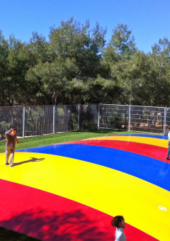 Juega una partida de minigolf con los niños en el precioso campo de golf. Después pueden saltar en el gran castillo hinchable. Tal vez quieran jugar al fútbol y al tenis con el equipo de animación del camping Vilanova Park. Luego tú mismo tendrás tiempo para una hora de fitness o una clase de aeróbic. Después de un día tan completo, es estupendo salir a la terraza. Siéntate bajo los árboles y disfruta de las vistas al mar. Mientras disfrutas de un buen vino español, por supuesto. Mientras comes, puedes escuchar música en directo.