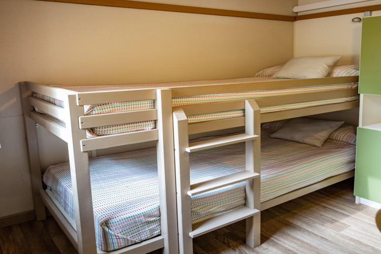 El chalet está diseñado para hasta seis personas y ofrece tres dormitorios cómodos en 33,75 m² de espacio habitable. Todos tienen su propio lugar para descansar después de un día al sol. El punto culminante es la amplia terraza de 12,50 m², donde puedes comenzar tu día con un desayuno tranquilo o terminarlo con bebidas frías y buenas conversaciones bajo las estrellas.