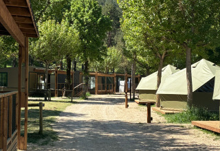 Camping familiar con condiciones ideales para unos dias de descanso. Muy cerca de pueblos muy bonitos, estacion de Ski, lo pasamos genial en el bungalow totalmente equipado, con su Barbacoa, fantastico.