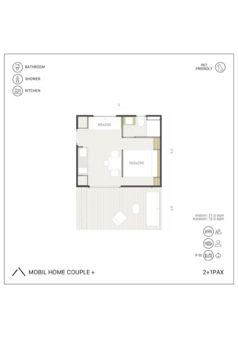 La Mobile Home Couple Plus es adecuada para tres personas. Un alojamiento espacioso y acogedor, rodeado de naturaleza, con una habitación doble y un sofá cama.