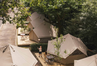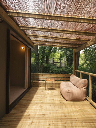 Un espacio que destaca por su confort, amplitud y diseño. En la planta baja hay una cama doble de 1,60 cm y en el altillo una segunda cama doble de 1,40 cm, ambas con aire acondicionado. Además, la tienda dispone de baño privado y cocina equipada, un sofá y un conjunto de jardín en la terraza. La ropa de cama y las toallas están incluidas para mayor comodidad y se aceptan perros (máximo 2; opcional con coste adicional).