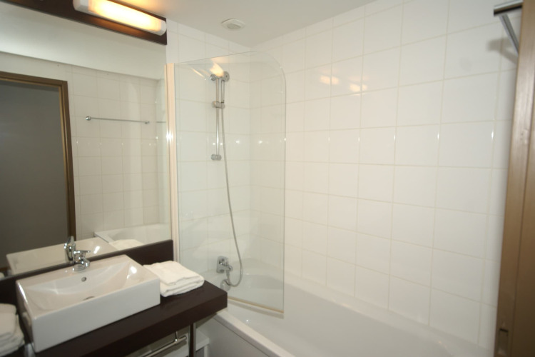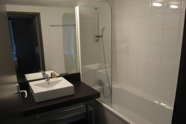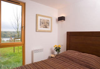 PLUS: - Bonito entorno, vistas al lago, parque bien cuidado con bungalows, paneles de madera de buen gusto, muy buen aislamiento acústico y luminoso. MENOS: - El colchón es bastante duro, el desagüe de la ducha estaba atascado y mal mantenido, el interruptor de la bañera/ducha no funcionaba, la luz de encima del lavabo estaba rota. Se prometieron reparaciones para el martes, pero el sábado no se había hecho nada. El personal sigue hablando en francés rápido y en voz baja, aun sabiendo que el huésped es un extranjero con escasos conocimientos de francés. El mayor problema es el retrete: es tan pequeño que incluso las personas delgadas tienen que dejar la puerta abierta para sentarse y levantarse.