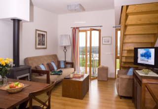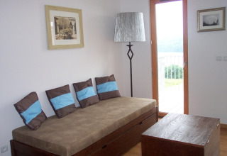 En el interior, encontrarás una luminosa sala de estar con un cómodo sofá cama doble y un dormitorio independiente con una cama doble o dos camas individuales. El diseño es sencillo y práctico, para que puedas instalarte y relajarte fácilmente. El baño es funcional y moderno, y hay todo lo necesario para una estancia confortable.