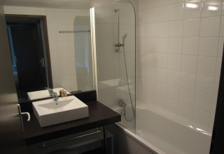 PLUS: - mooie omgeving, uitzicht over meer, park met de bungalows is zeer fraai aangelegd, mooie afwerking van het interieur met hout, zeer goed geïsoleerd wat betreft geluid en licht. MIN: - matras is tamelijk hard, afvoer douche was slecht door verstopping, wisselknop bad/douche werkte niet, lampje boven de gootsteen was kapot, reparatie werd beloofd op dinsdag maar op zaterdag was er nog niets gebeurd, personeel blijft snel en binnensmonds Frans spreken ook al weten ze dat de gast een buitenlander is die matig Frans spreekt. De echte spelbreket is toch wel het toilet: dat is zo klein, dat zelfs een slank persoon de deur moet open laten staan om te kunnen gaan zitten en weer op te staan.
