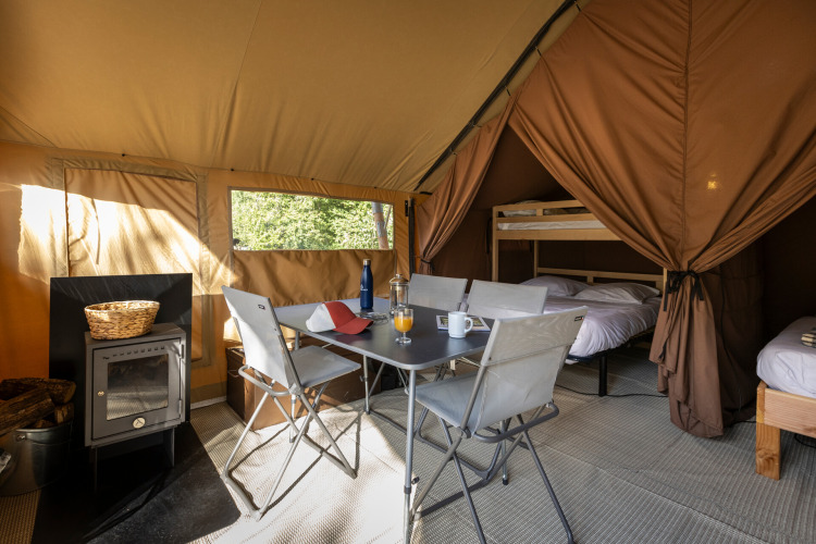 La combinación perfecta de autenticidad y comodidad, la tienda Canadienne Cosy garantiza una estancia en plena naturaleza para desconectar por completo. ¿Un plus? ¡La estufa de leña para proporcionar un calor acogedor durante las noches frescas de verano!