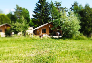 Esta robusta tienda safari está situada sobre una plataforma de madera y ofrece una cómoda experiencia de glamping en medio del camping. Dentro encontrarás una espaciosa sala de estar con mesa de comedor y bancos, así como dos dormitorios. Los padres duermen en colchones tipo box spring cómodos y en el segundo dormitorio hay dos literas. Las almohadas, edredones y ropa de cama están incluidos. En la tienda hay una cocina equipada con un amplio inventario, una nevera grande con congelador y una cafetera Nespresso. Para cocinar, hay una cocina exterior móvil con cocina de gas de 4 fuegos.