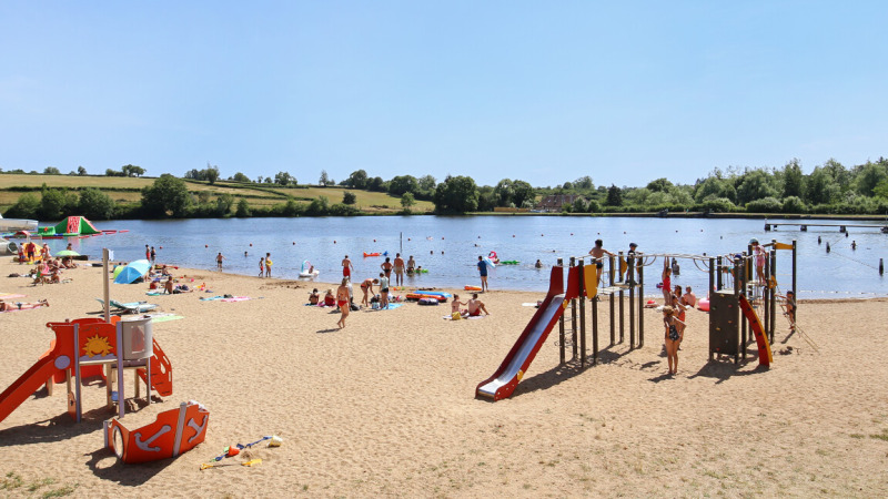 El glamping de Arnay-le-Duc está situado en un pequeño lago con playa de arena.