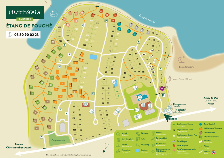 Regálate unas vacaciones rurales en el camping Huttopia Etang de Fouché, totalmente renovado, entre el bosque de Morvan y los viñedos más bellos de Borgoña. Disfruta de los deportes al aire libre, la gastronomía, las actividades de verano o relájate junto a la piscina. Alójate en cómodos alojamientos y disfruta de servicios de restauración, un centro de natación y juegos, y una piscina climatizada. ¡El destino ideal para unas vacaciones tranquilas en la naturaleza!