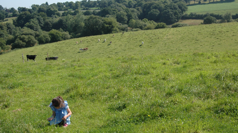 - Vista del prado donde pastan las vacas