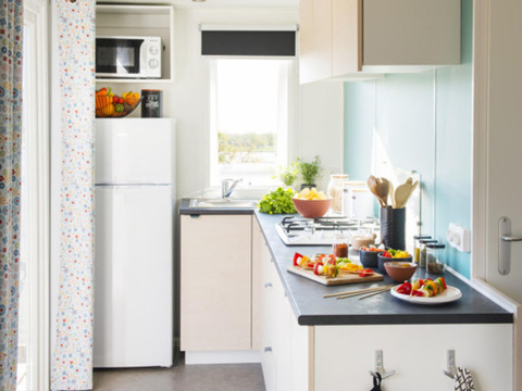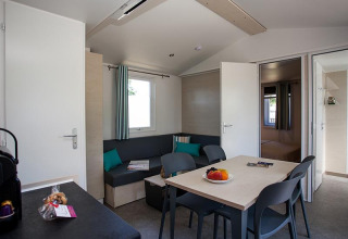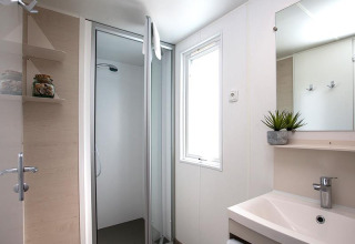 La cabaña Premium es un alojamiento moderno y completamente equipado con un diseño elegante. Esta cabaña tiene una superficie habitable de 32 m² y cuenta con una amplia terraza de 18 m² y un jardín de aproximadamente 130 m². Se permiten mascotas bajo ciertas condiciones.