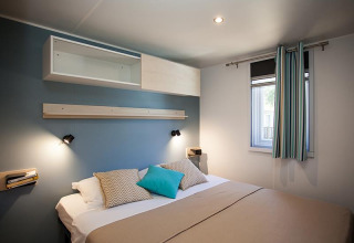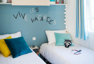 El alojamiento dispone de dos dormitorios separados. El primer dormitorio está equipado con una cama doble de 160 x 200 cm, espacio de armario y contraventanas. El segundo dormitorio tiene dos camas individuales de 90 x 190 cm, también con espacio de armario y contraventanas.