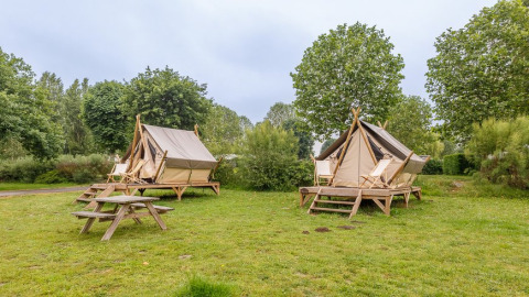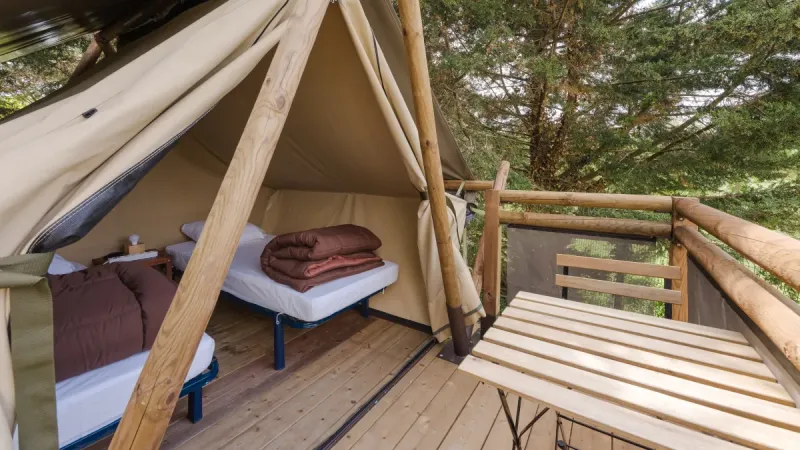 Disfruta de la "slow life" en este bivouac nómada único, perfecto para amantes de la naturaleza, parejas o una parada para senderistas. Combinando sencillez con comodidad, esta inusual tienda glamping cuenta con un encantador armazón de madera y un techo de lona tensada. En el interior, encontrarás dos camas individuales, mientras que en el exterior tienes una pequeña terraza para relajarte. Ten en cuenta que no hay cocina ni baño privado, ofreciendo así una auténtica experiencia al aire libre volviendo a lo esencial.