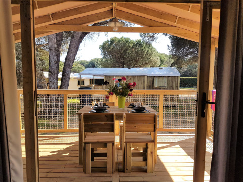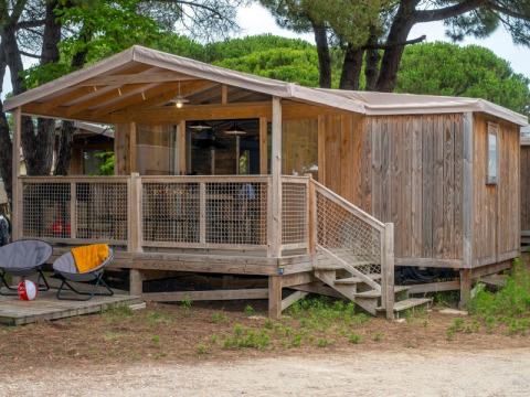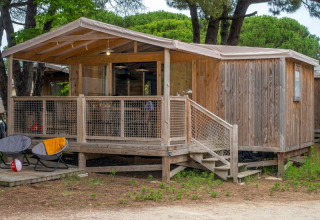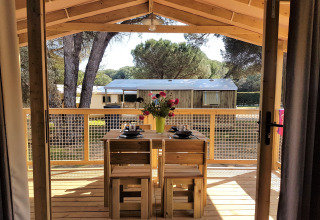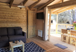 Experimenta la máxima sensación al aire libre con un toque de lujo en la Cosyflower sobre pilotes. Este espacioso alojamiento glamping de 38 m² ofrece todo el confort para cuatro personas. En el interior te espera una acogedora sala de estar con televisión, una cocina completamente equipada y dos dormitorios separados: uno con una cama doble de 160 x 200 cm y otro con dos camas individuales de 90 x 190 cm. Gracias a la ubicación elevada, cada mañana se siente como despertar en las alturas, con vistas a la naturaleza. Afuera te espera la gran terraza de 11 m², ideal para largos desayunos o una buena copa de vino bajo el sol de la tarde. La Cosyflower combina estilo, tranquilidad y confort para una experiencia de camping única donde la vida al aire libre es lo principal, sin renunciar a la comodidad.