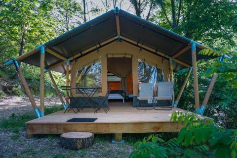 Nous avons passé un très bon séjour dans ce camping malgré la chaleur. Les propriétaires sont très sympas et font tout pour qu'on se sente bien. Les tentes (nous safari) sont bien. Attention, le terrain est en pente et la terrasse est un peu en hauteur avec une grosse marche. Ça peut être compliqué avec des tous petits. L'endroit est calme et dans la forêt. On s'y sent bien. Le seul point "négatif" (car c'est relatif), c'est que l'accès "privilégié" à la rivière n'est pas dans le camping. On doit prendre la voiture. Sinon c'est 30min à pied et ça remonte fort pour le retour. Nous aurions préféré le savoir avant car avec les enfants, c'est qd même compliqué sans la voiture. Mais la baignade la plus proche est juste géniale😁.